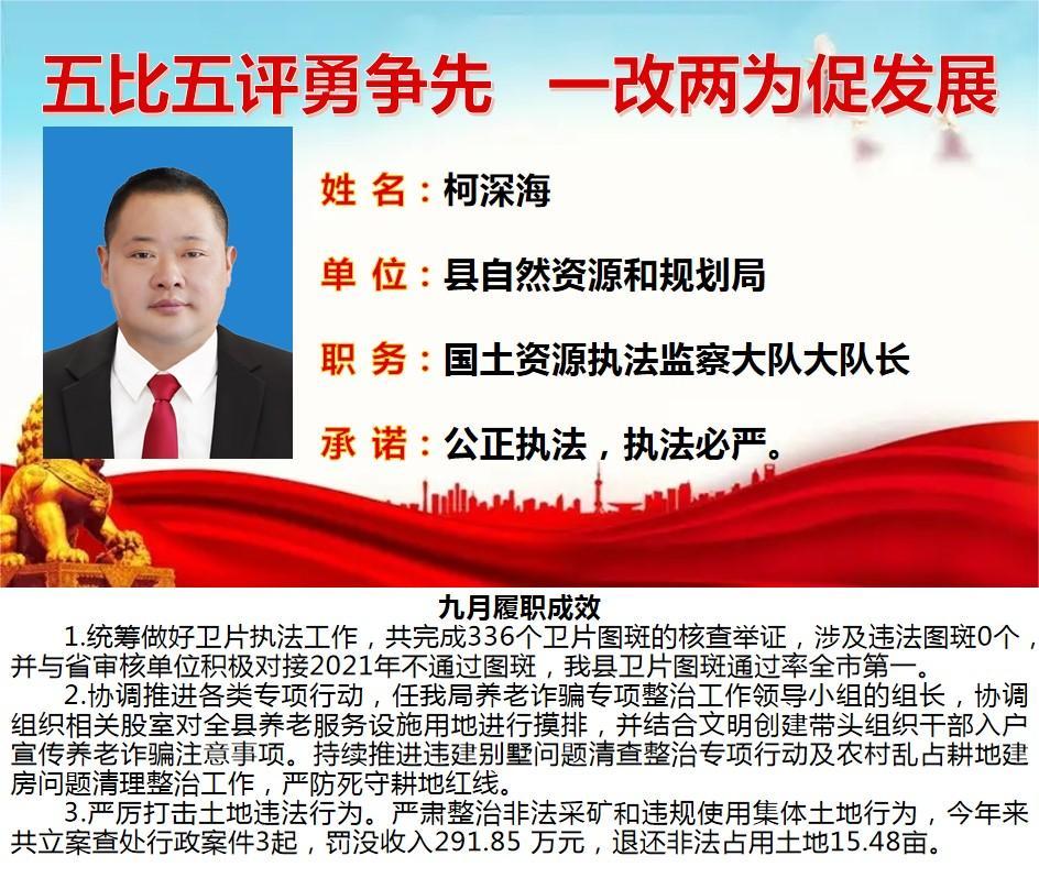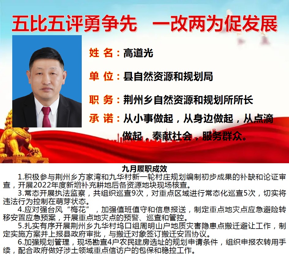 為深入學習貫徹習近平總書記關于作風建設重要論述、落實省委“一改兩為五做到”要求,著力解決個別干部作風中“虛、躲、冷、粗、假”等頑瘴痼疾,我縣組織開展了縣直單位百名股長“五比五評”活動。根據活動《實施方案》要求,現將2022年度100名參評對象9月份履職成效分期進行公示。