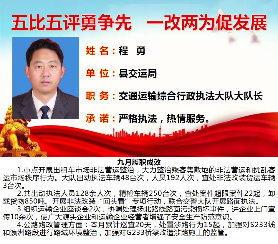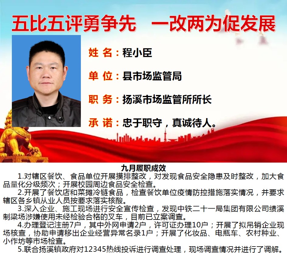 績溪先鋒網本期將公示行政執法類17名參評對象9月份履職成效