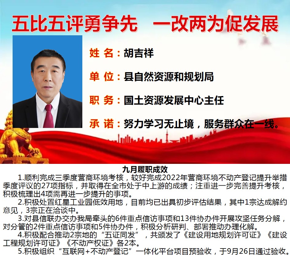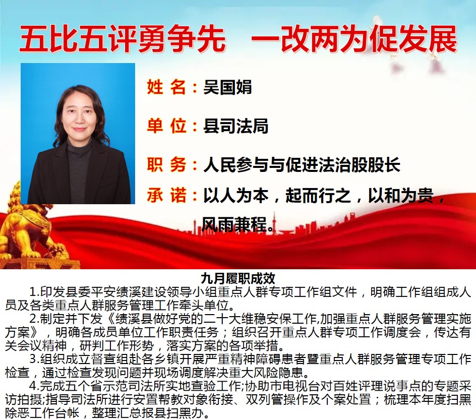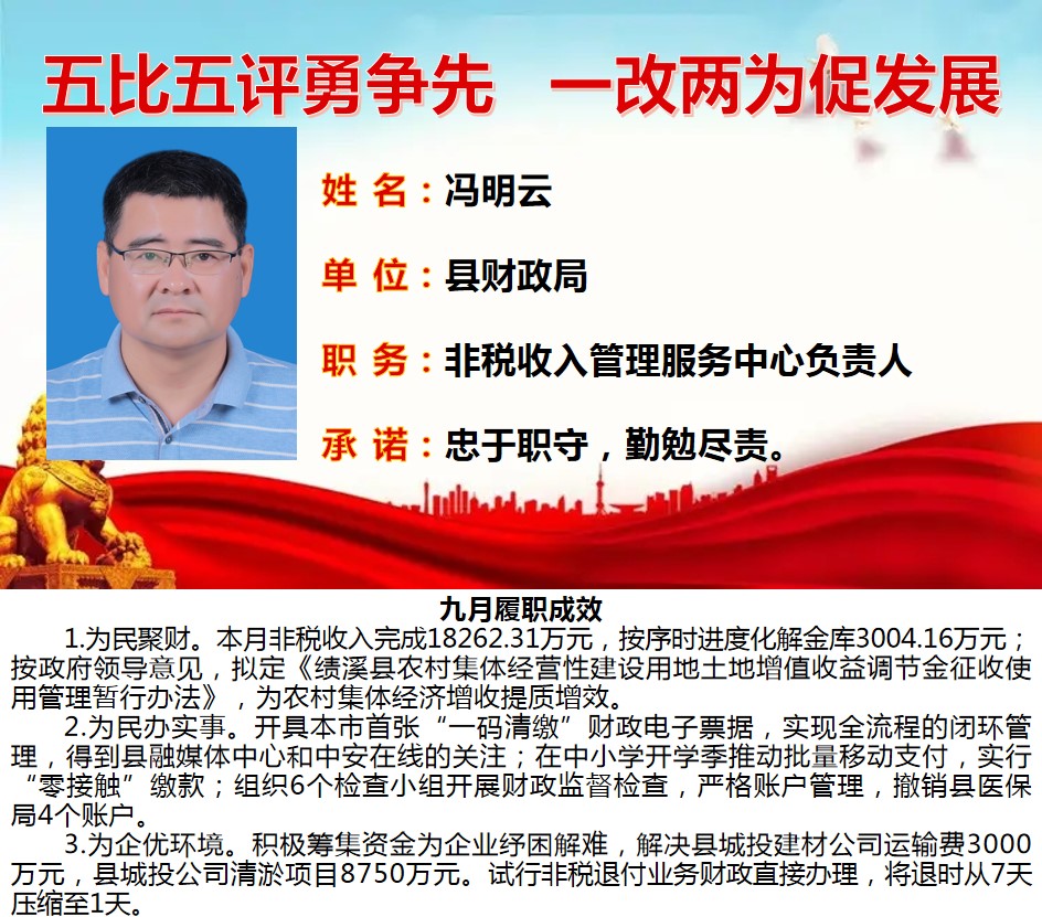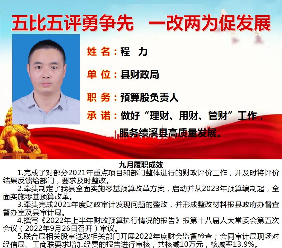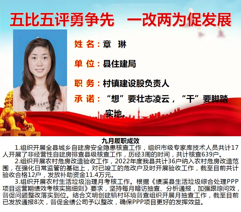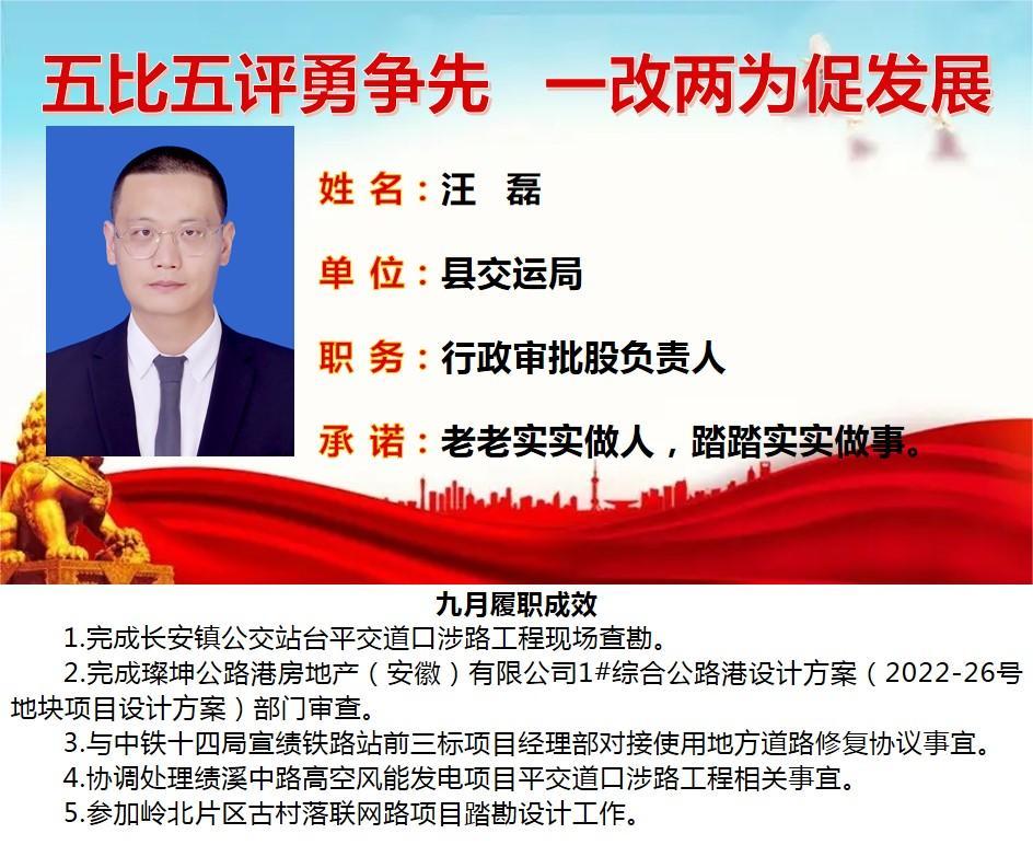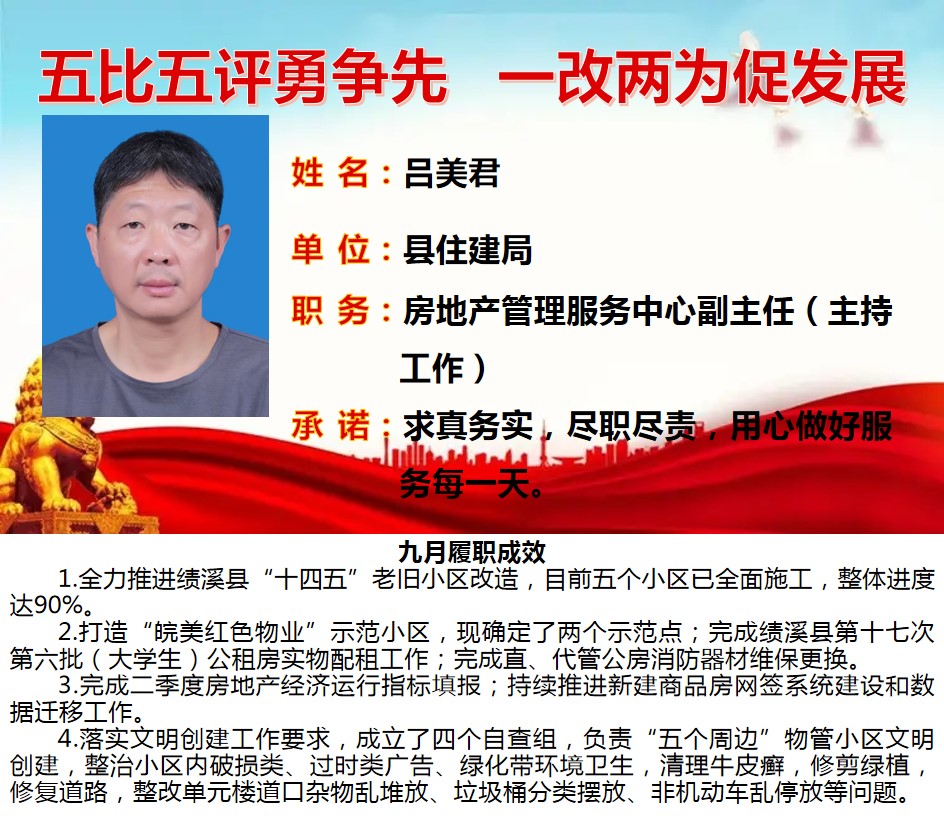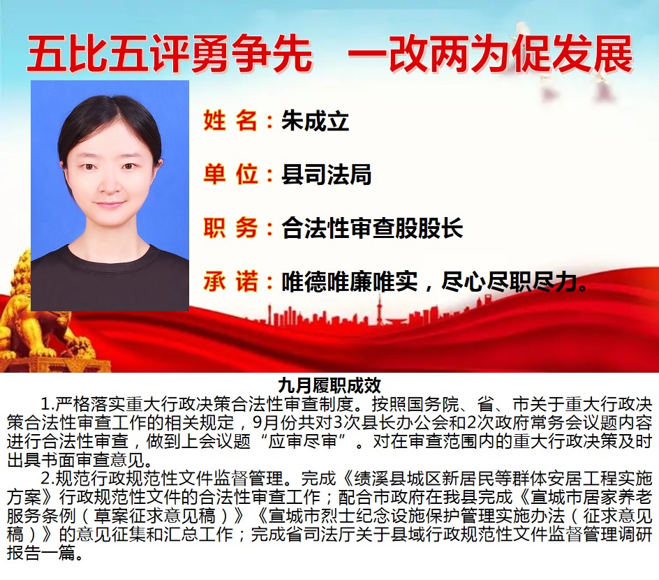 績溪先鋒本期將公示綜合管理類18名參評對象9月份履職成效