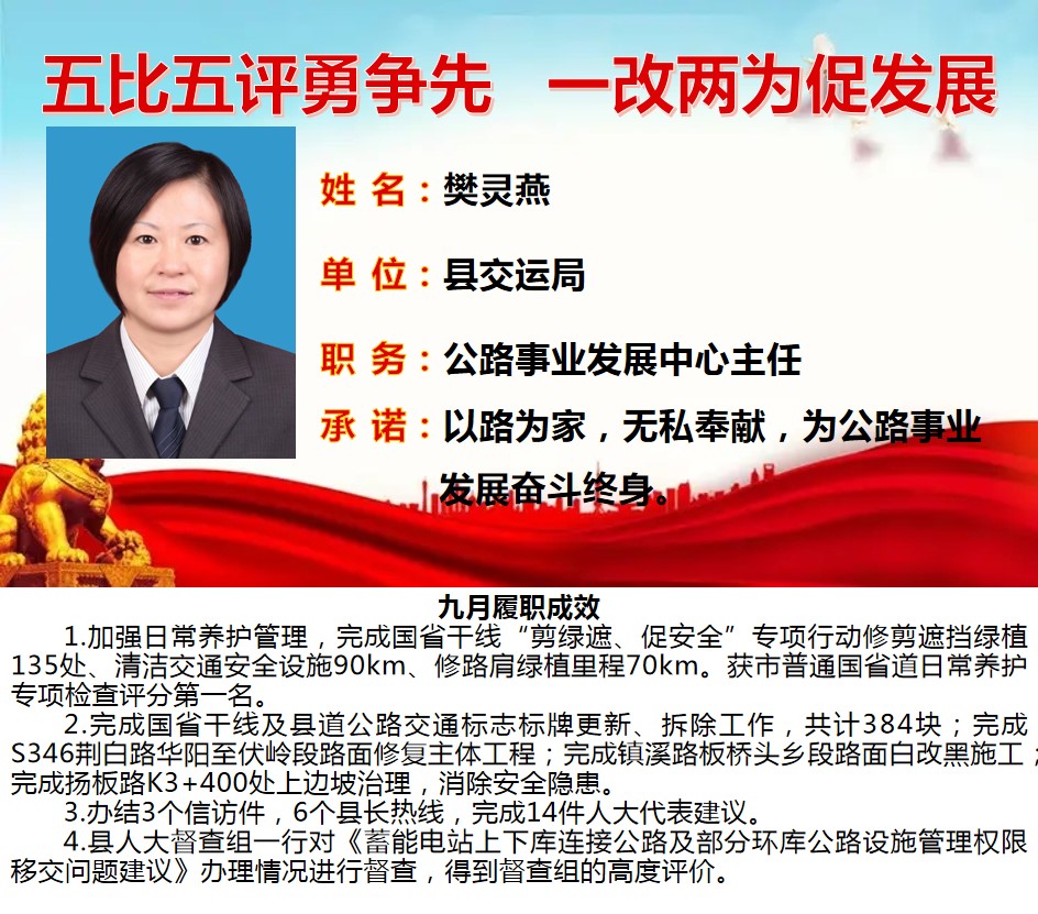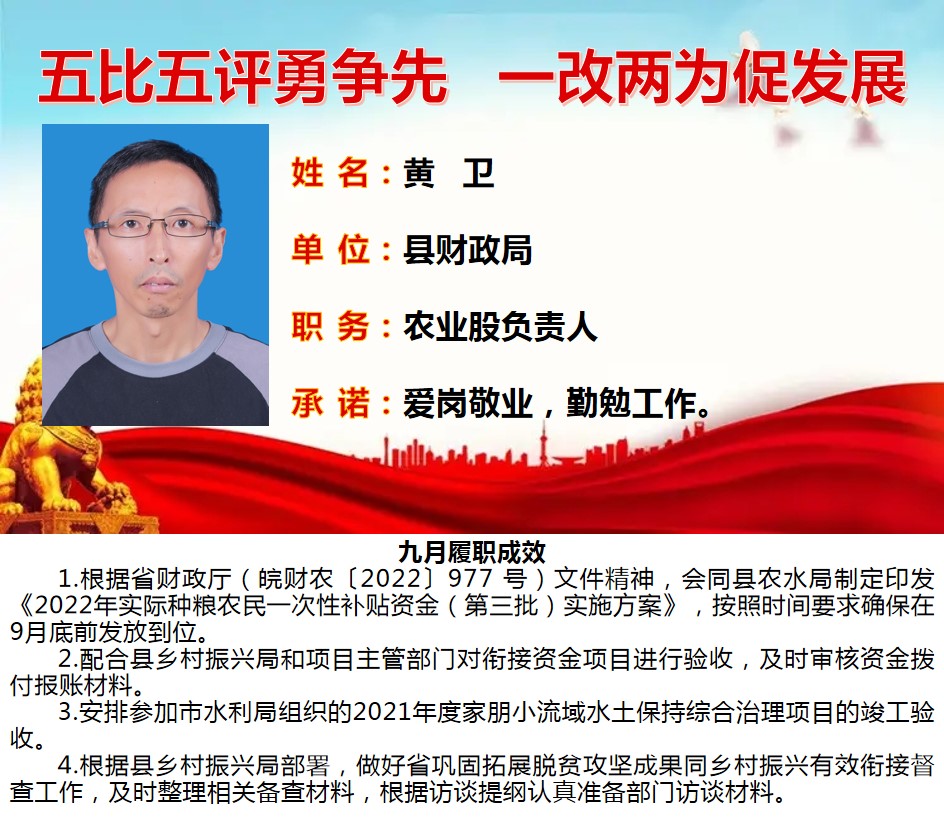 為深入學(xué)習(xí)貫徹習(xí)近平總書記關(guān)于作風(fēng)建設(shè)重要論述、落實省委“一改兩為五做到”要求,著力解決個別干部作風(fēng)中“虛、躲、冷、粗、假”等頑瘴痼疾,我縣組織開展了縣直單位百名股長“五比五評”活動。根據(jù)活動《實施方案》要求,現(xiàn)將2022年度100名參評對象9月份履職成效分期進行公示。