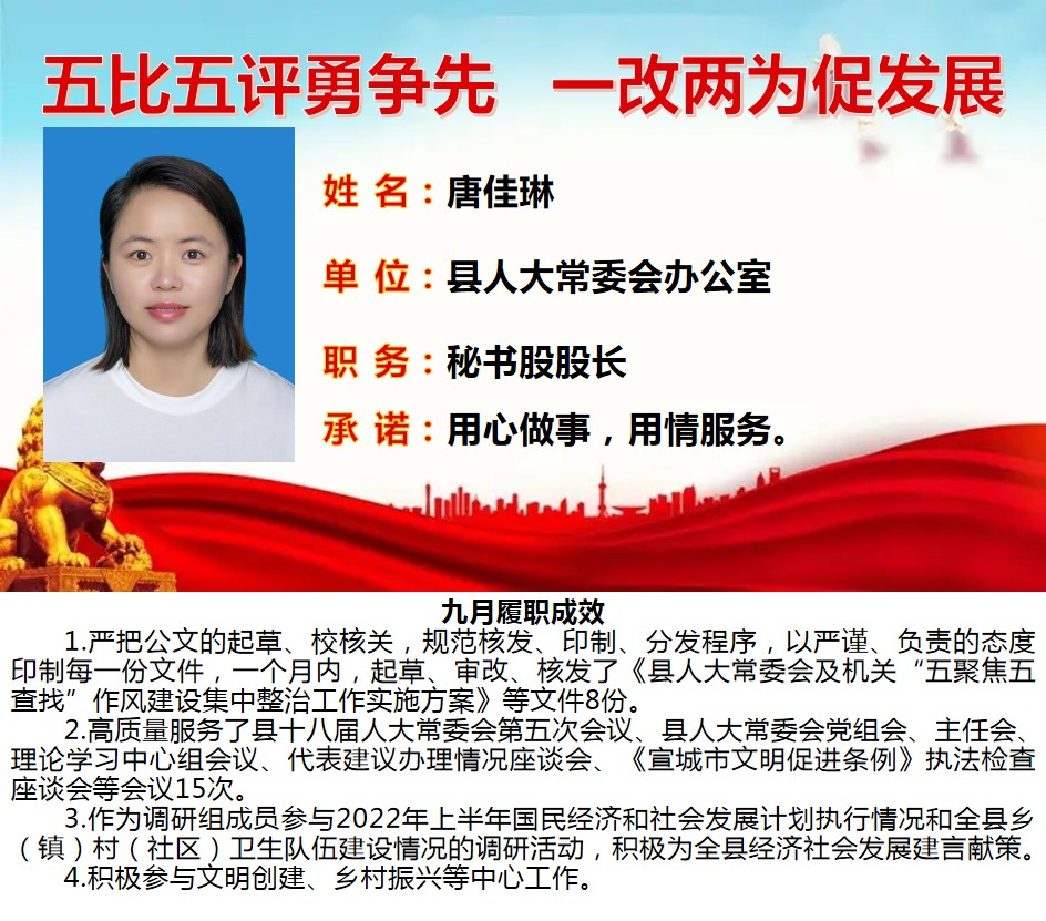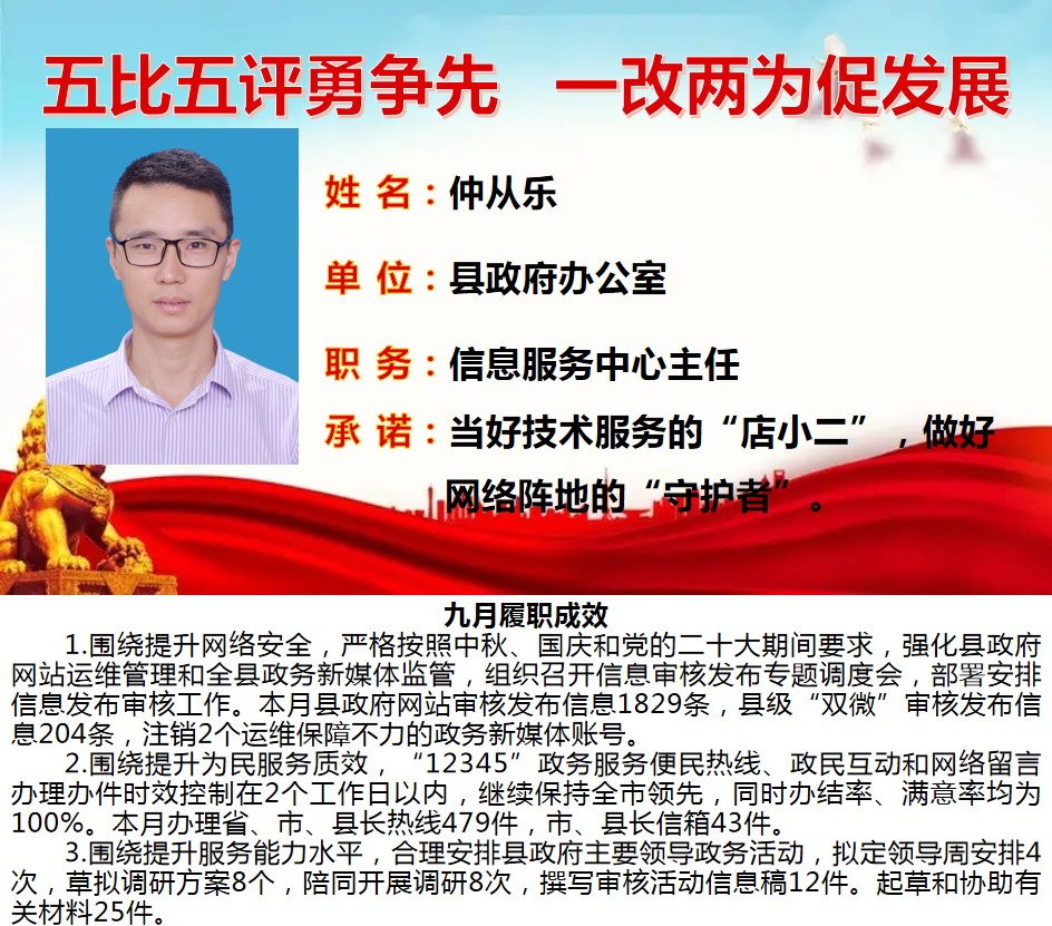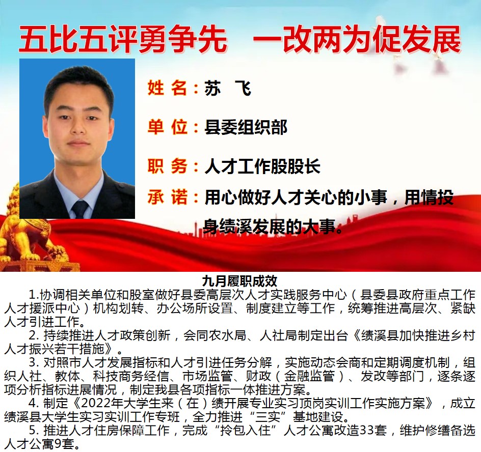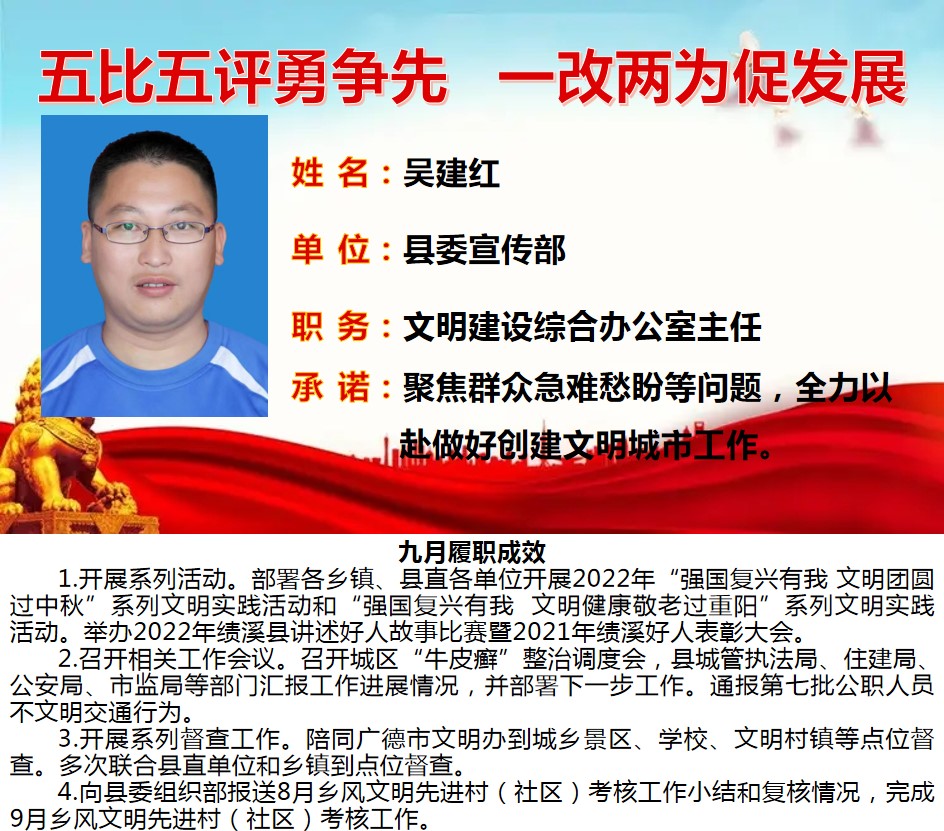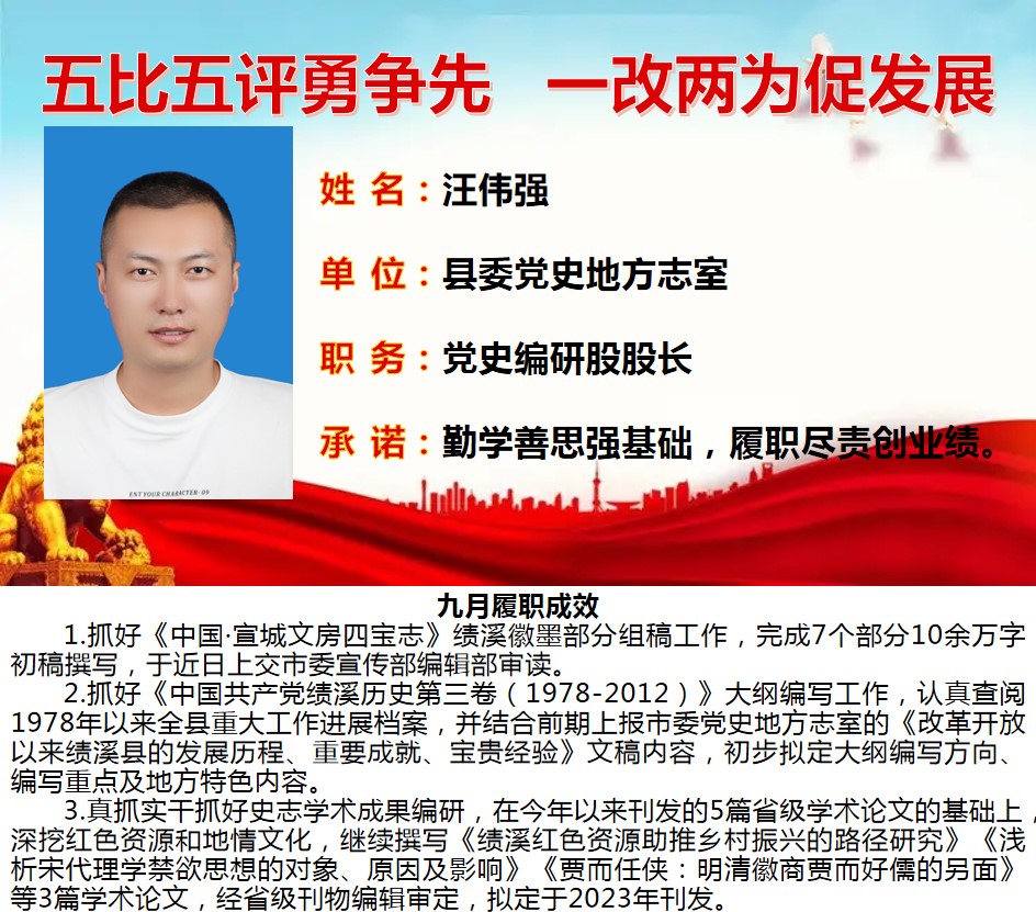 績溪先鋒本期將公示綜合管理類15名參評(píng)對(duì)象9月份履職成效