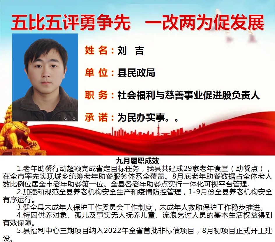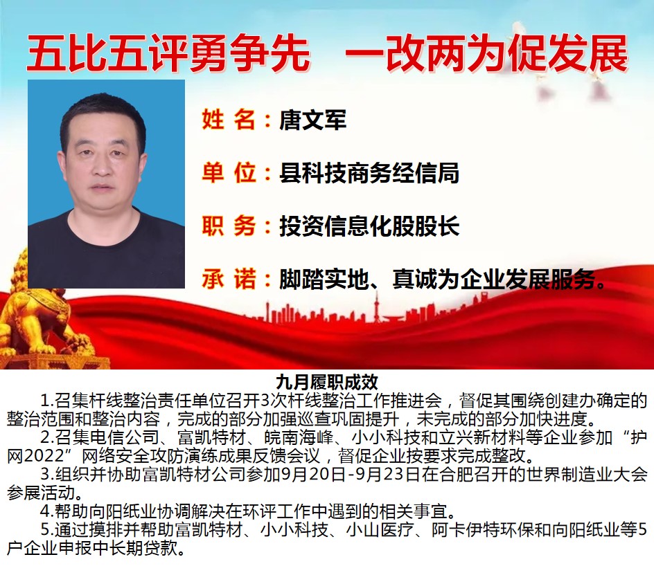 為深入學(xué)習(xí)貫徹習(xí)近平總書記關(guān)于作風(fēng)建設(shè)重要論述、落實(shí)省委“一改兩為五做到”要求,著力解決個(gè)別干部作風(fēng)中“虛、躲、冷、粗、假”等頑瘴痼疾,我縣組織開展了縣直單位百名股長“五比五評(píng)”活動(dòng)。根據(jù)活動(dòng)《實(shí)施方案》要求,現(xiàn)將2022年度100名參評(píng)對(duì)象9月份履職成效分期進(jìn)行公示。