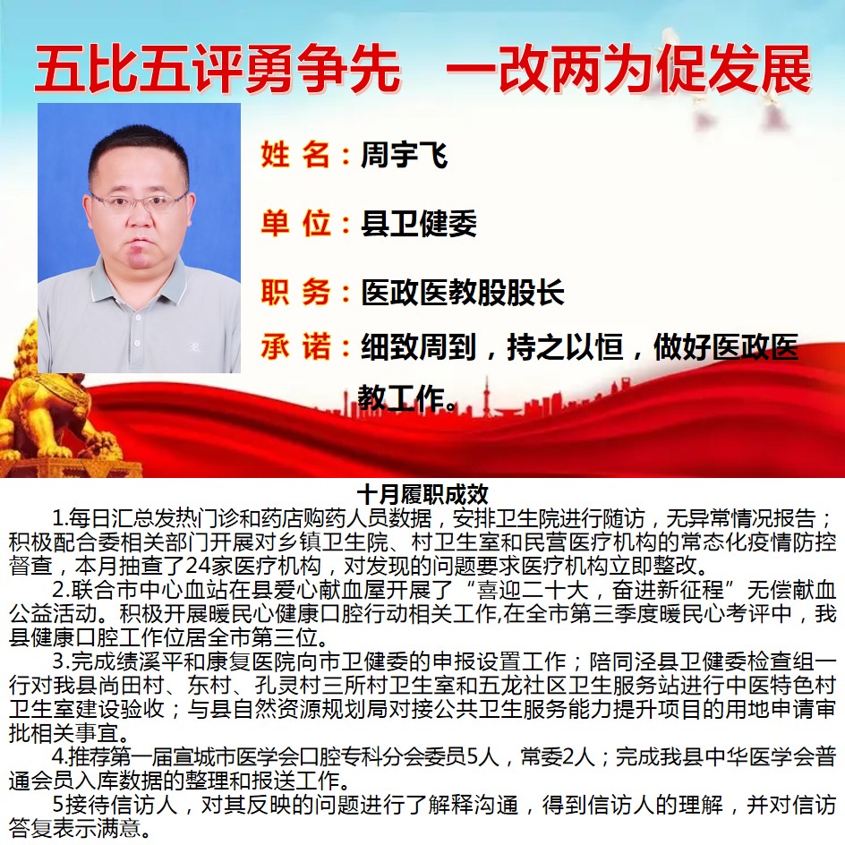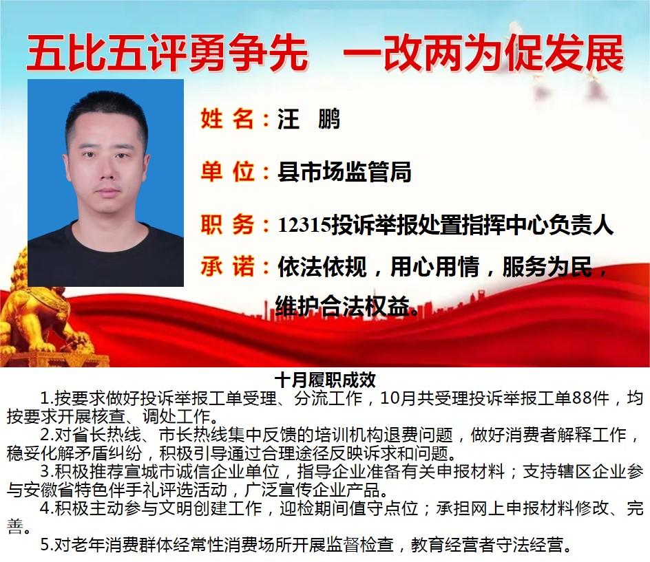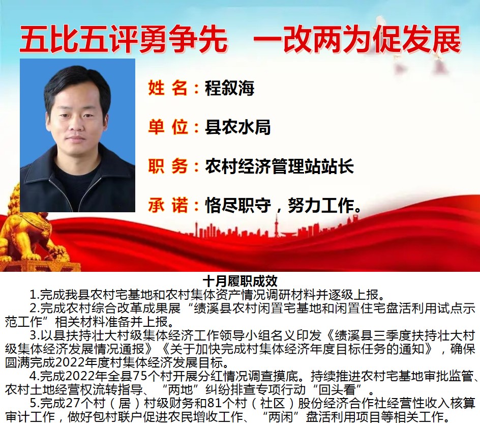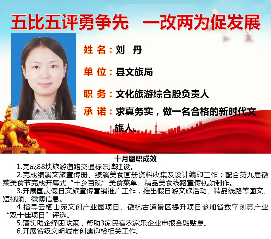 績溪先鋒本期將公示綜合管理類17名參評對象10月份履職成效