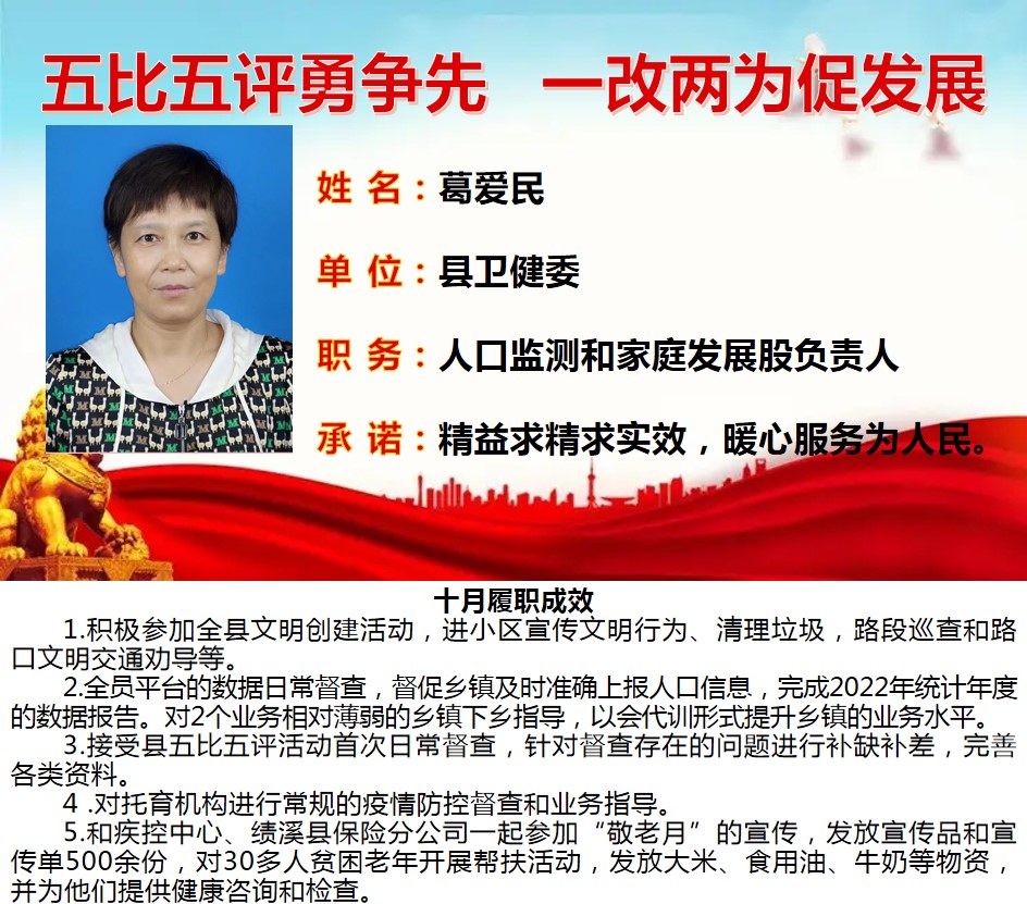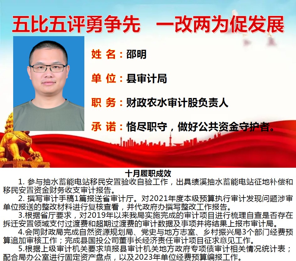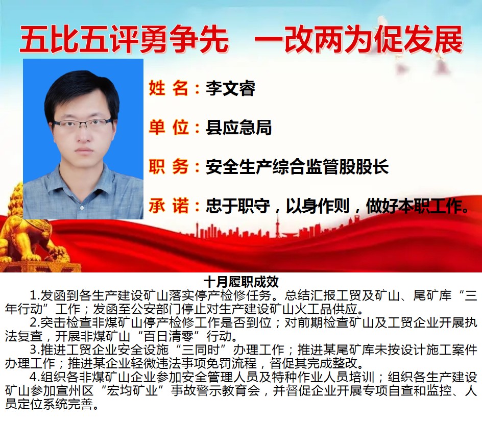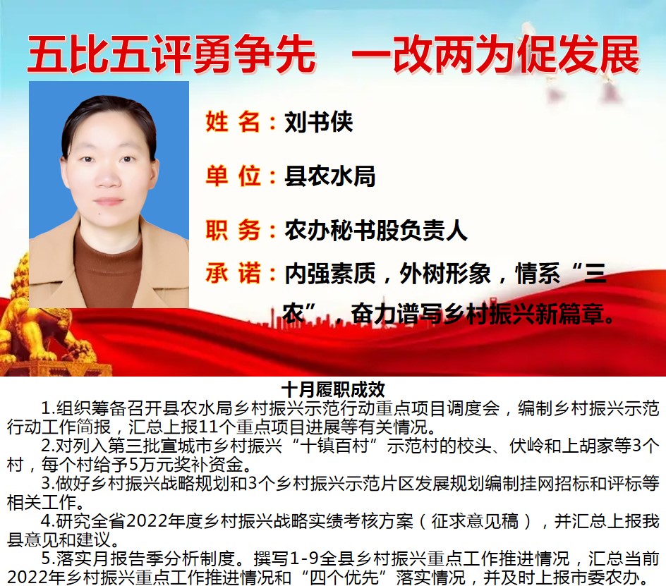 績溪先鋒本期將公示綜合管理類17名參評對象10月份履職成效