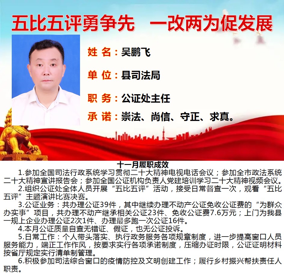 為深入學(xué)習(xí)貫徹習(xí)近平總書記關(guān)于作風(fēng)建設(shè)重要論述、落實(shí)省委“一改兩為五做到”要求,著力解決個別干部作風(fēng)中“虛、躲、冷、粗、假”等頑瘴痼疾,我縣組織開展了縣直單位百名股長“五比五評”活動。根據(jù)活動《實(shí)施方案》要求,現(xiàn)將2022年度100名參評對象11月份履職成效分期進(jìn)行公示。