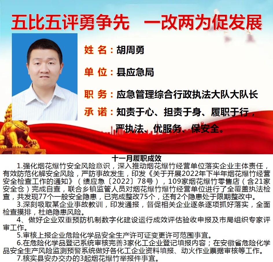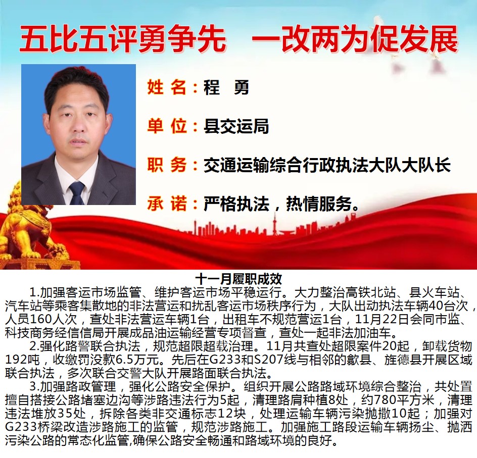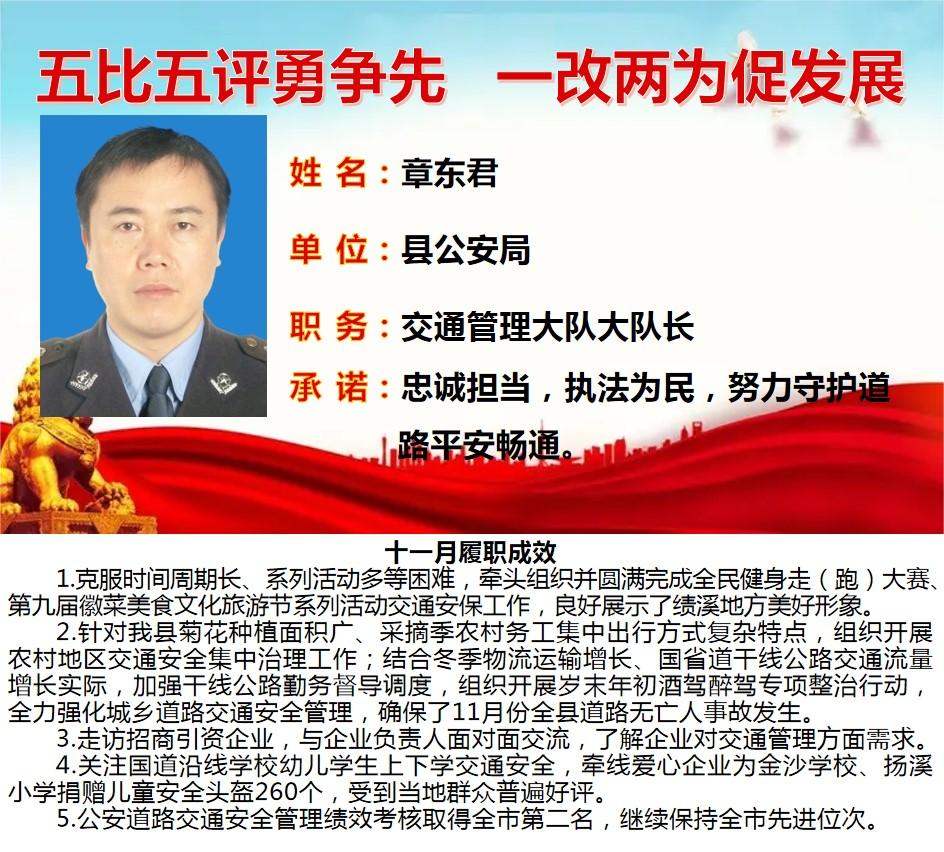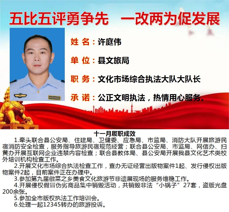 績溪先鋒本期將公示行政執法類17名參評對象11月份履職成效