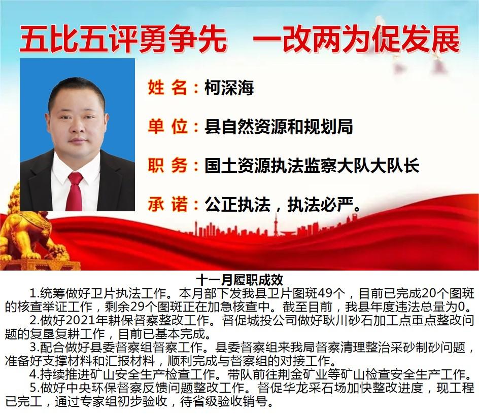為深入學習貫徹習近平總書記關于作風建設重要論述、落實省委“一改兩為五做到”要求,著力解決個別干部作風中“虛、躲、冷、粗、假”等頑瘴痼疾,我縣組織開展了縣直單位百名股長“五比五評”活動。根據活動《實施方案》要求,現將2022年度100名參評對象11月份履職成效分期進行公示。