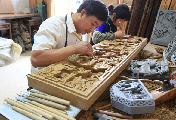 “我的工藝廠很小,卻承載了我畢生的事業(yè)。”績(jī)溪縣文革磚雕工藝廠廠長(zhǎng)宋文革向記者介紹,磚雕藝術(shù)內(nèi)涵豐富,包括花鳥(niǎo)、人物、戲曲、生活場(chǎng)景和吉祥紋飾等各色圖案。通過(guò)工整的雕刻、流暢的運(yùn)線、突出的場(chǎng)景主題、分明的層次結(jié)構(gòu),藝術(shù)再現(xiàn)出千年人文情調(diào),因此被廣泛地應(yīng)用門(mén)樓、鏤窗、民檐、屋頂及旌表牌坊等,營(yíng)造典雅莊重的生活氛圍。