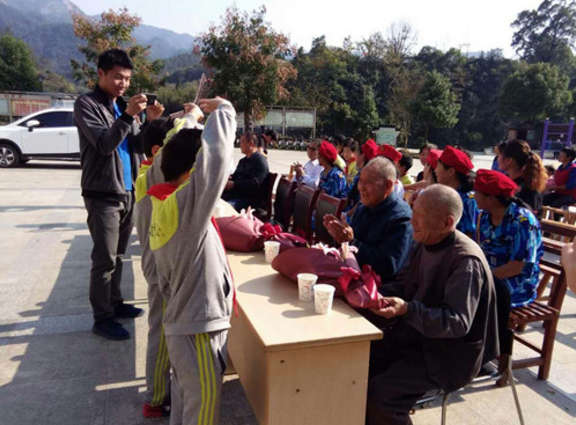 午飯過后,早早來到演出現(xiàn)場的村民不時詢問演出何時開始,群眾參與的氣氛熱烈。下午13時30分,在優(yōu)美的祝你平安的音樂聲中,由代表祖國未來的少先隊員為到場的90歲老人送上鮮花拉開慰問節(jié)目的序幕,接著由龍川小學精心編排和龍川村民自編自演的10個表演節(jié)目,不時贏得觀看群眾的陣陣掌聲。一些群眾還紛紛表示,這種群眾參與、融入社會和諧的活動要多多開展。