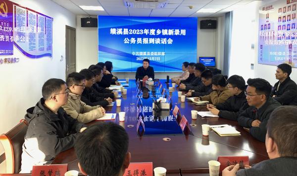 為上好入職“第一課”,幫助新錄用公務員盡快轉變角色、融入新環境、開始新工作。12月7日下午,績溪縣召開2023年鄉鎮專項招錄新錄用公務員集體報到談話會,縣委組織部相關負責同志出席會議并講話。各有關鄉鎮和縣委組織部公務員科工作人員參加會議。