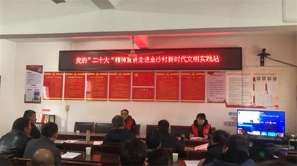 從鎮(zhèn)機(jī)關(guān)到村委會(huì),從田間到村民家里,從黨員活動(dòng)室、新時(shí)代文明實(shí)踐所、站到小商店里,連日來(lái),金沙鎮(zhèn)處處涌動(dòng)著學(xué)習(xí)宣傳黨的二十大精神的熱潮。