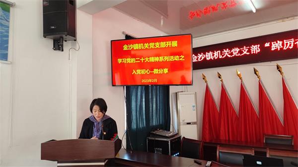 為全面落實績溪縣2023“黨建工作提升年”實施方案的工作要求,金沙鎮機關黨支部開展“踔厲奮發新征程,黨建引領謀新篇”主題黨日之“四微活動”,始終堅持以習近平新時代中國特色社會主義思想為指導,全面貫徹黨的二十大精神,深入落實新時代黨的建設總要求和新時代黨的組織路線,進一步深化黨員干部思想政治教育,增強履職盡責、先鋒模范、優質服務的意識。通過主題黨日上的“微朗讀”、“微黨課”、“微故事”、“微分享”,豐富黨員活動的形式,激發黨員學習熱情。