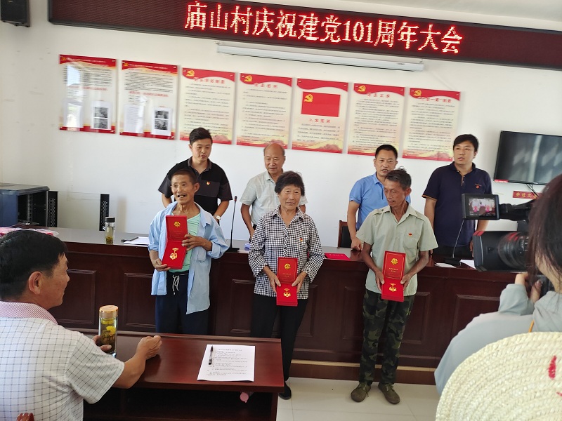 廟山村慶祝建黨101周年大會上,首先為黨齡50周年的老黨員頒發(fā)“光榮在黨50年”紀(jì)念章,對表現(xiàn)優(yōu)秀的共產(chǎn)黨員進(jìn)行表彰。隨后,全體黨員在村黨總支書記黃正的帶領(lǐng)下,重溫入黨誓詞,進(jìn)一步激發(fā)了全體黨員的凝聚力、向心力和戰(zhàn)斗力。最后績溪縣新四軍歷史研究會常務(wù)副會長汪灶雄給全體黨員上了一堂生動的黨課,詳細(xì)介紹了霞譚山上橫路游擊根據(jù)地建立和中共旌績縣委第一支游擊隊成立情況,同時與部分老黨員交流了霞譚紅色故事。