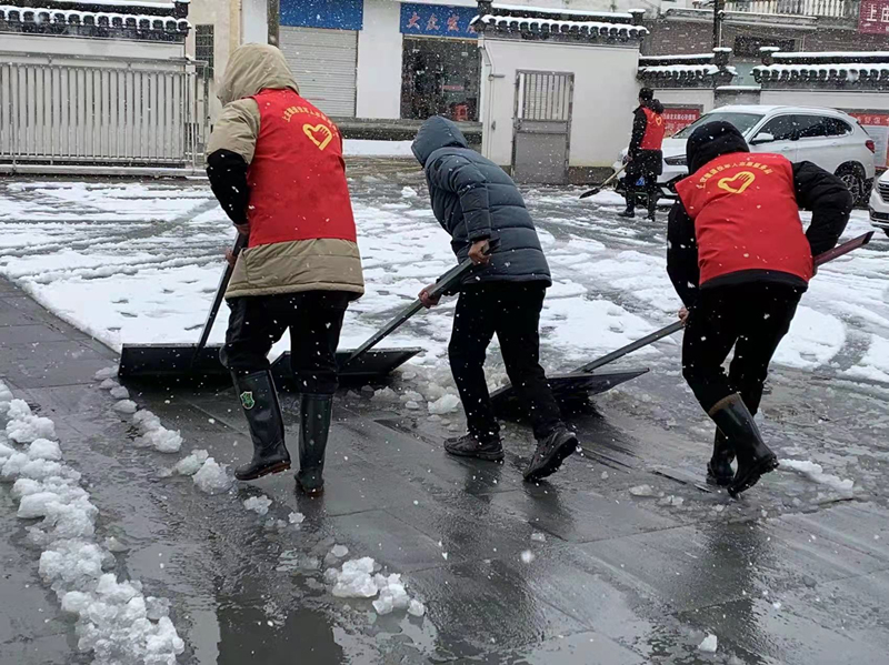 黨員干部迅速行動,班子成員以身作則,當好鏟雪除冰的“帶頭人”,鎮村黨員干部緊跟其后,奔赴工作崗位,積極開展鏟雪除冰工作。大家換上雨衣雨鞋,手拿鐵鍬、雪鏟等工具,對辦公大院包干責任區域、主干線路上積雪較多區域進行鏟雪除冰。天氣嚴寒、路面濕滑,但大家個個精神飽滿、干勁十足,在紅色身影的帶動下,越來越多的群眾也加入了鏟雪隊伍中,黨群齊心,合力打贏冰雪攻堅戰。