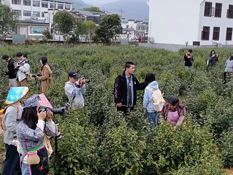 突出基地成效,深化“社會實踐”合作成果。3月21日,上海東海職業技術學院的75名影視傳媒專業學生和4名老師來到上莊,開展為期四天的社會實踐活動。在此期間,上莊鎮安排專人與高校團隊負責人一對一聯系,全程對接,先后在傳統古村落,徽墨、徽雕、絹花企業,金山時雨茶園,茶葉加工廠等地開展了實踐學習,詳細介紹本地人文和特色產業,全程為師生提供安全保障等服務。學生們利用專業設備和技術,拍攝制作出高質量的照片視頻,通過官方視頻號、校園公眾號等多種渠道發布,為上莊宣傳代言,收獲了大量點贊和關注,將實踐合作轉化為實際成果。